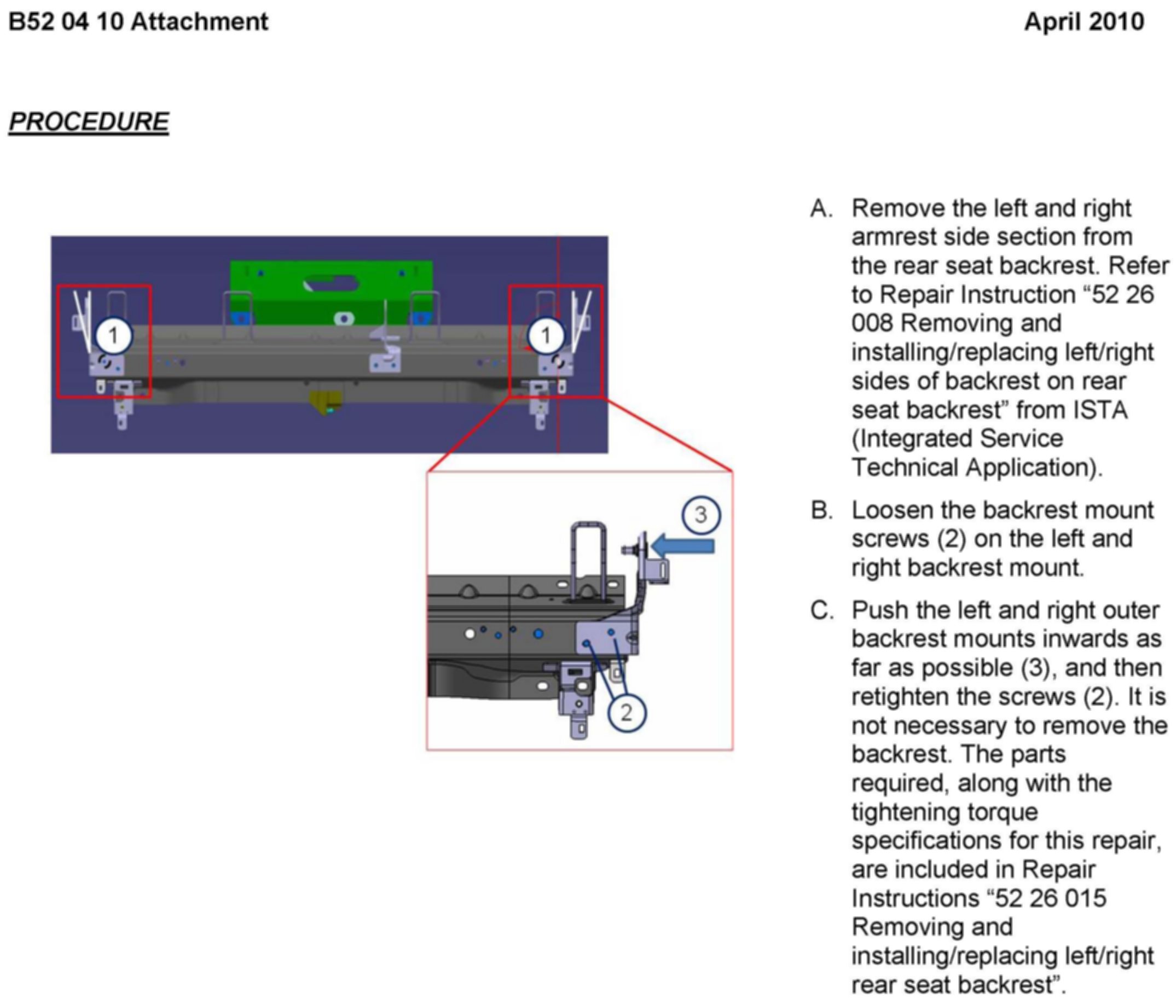1. Refer to the attachment to this Service Information for the procedure for adjusting the backrest mount.
