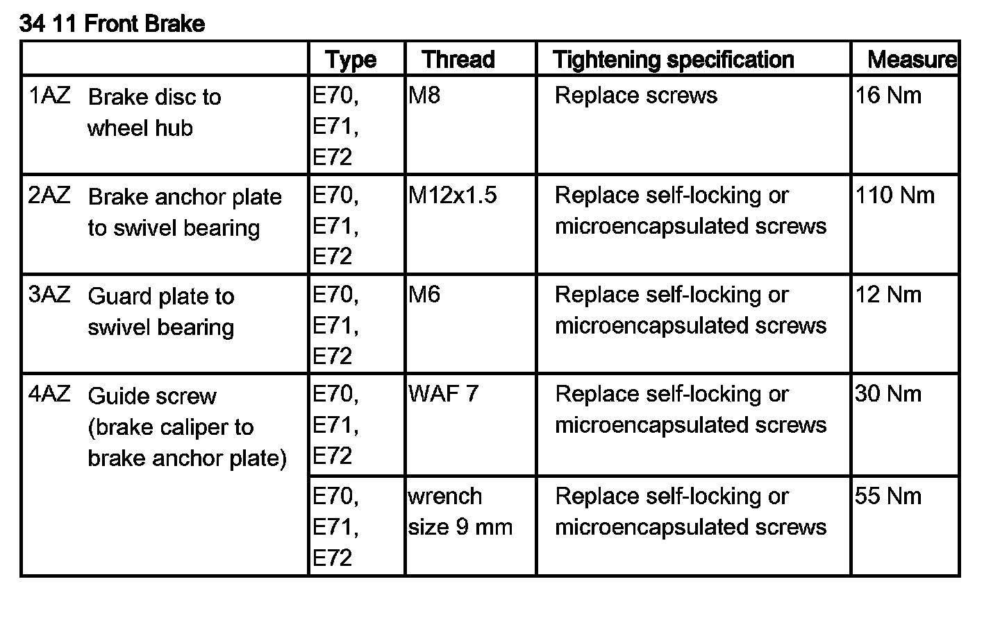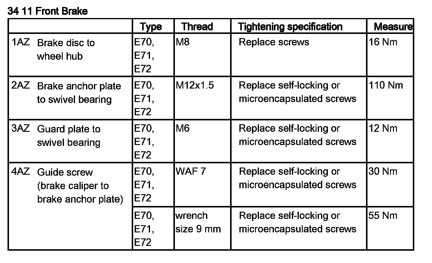 - Brake pad wear sensor: after removal it must be replaced (brake pad wear sensor loses its retention capability in the break pad).