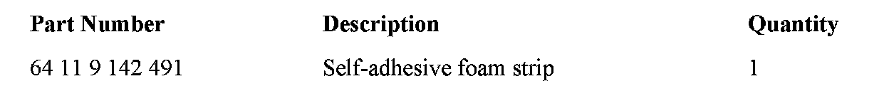 3. Obtain a self-adhesive foam strip (1) from the Parts department.