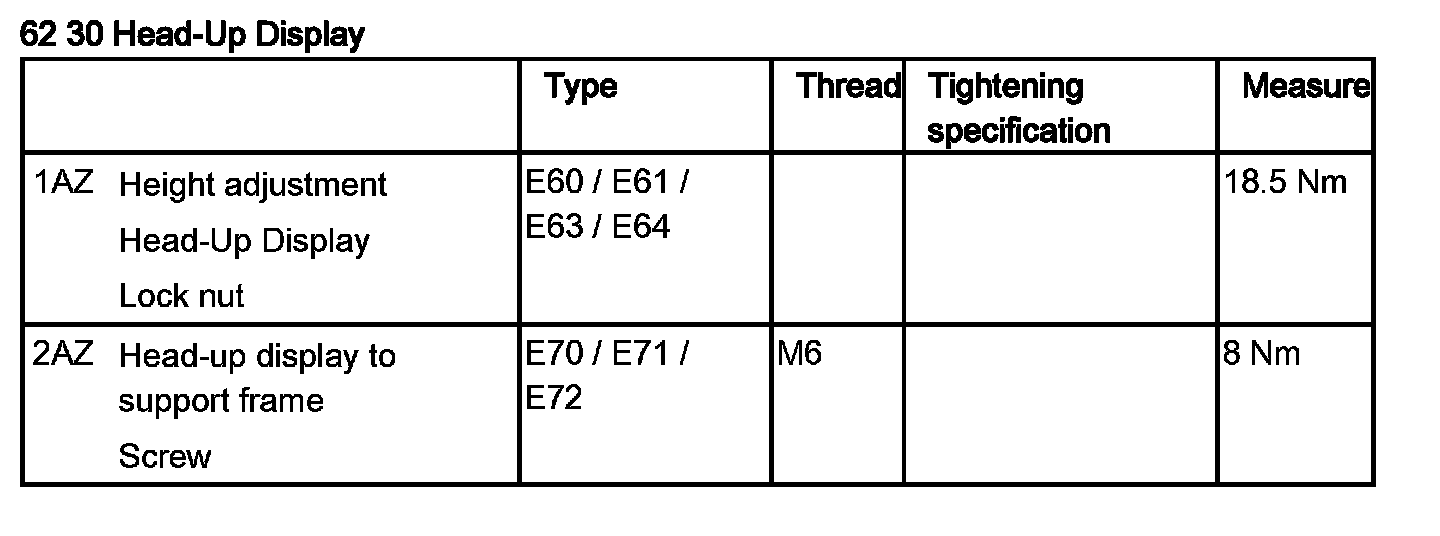 62 30 010 Removing And Installing/Renewing Head-up Display