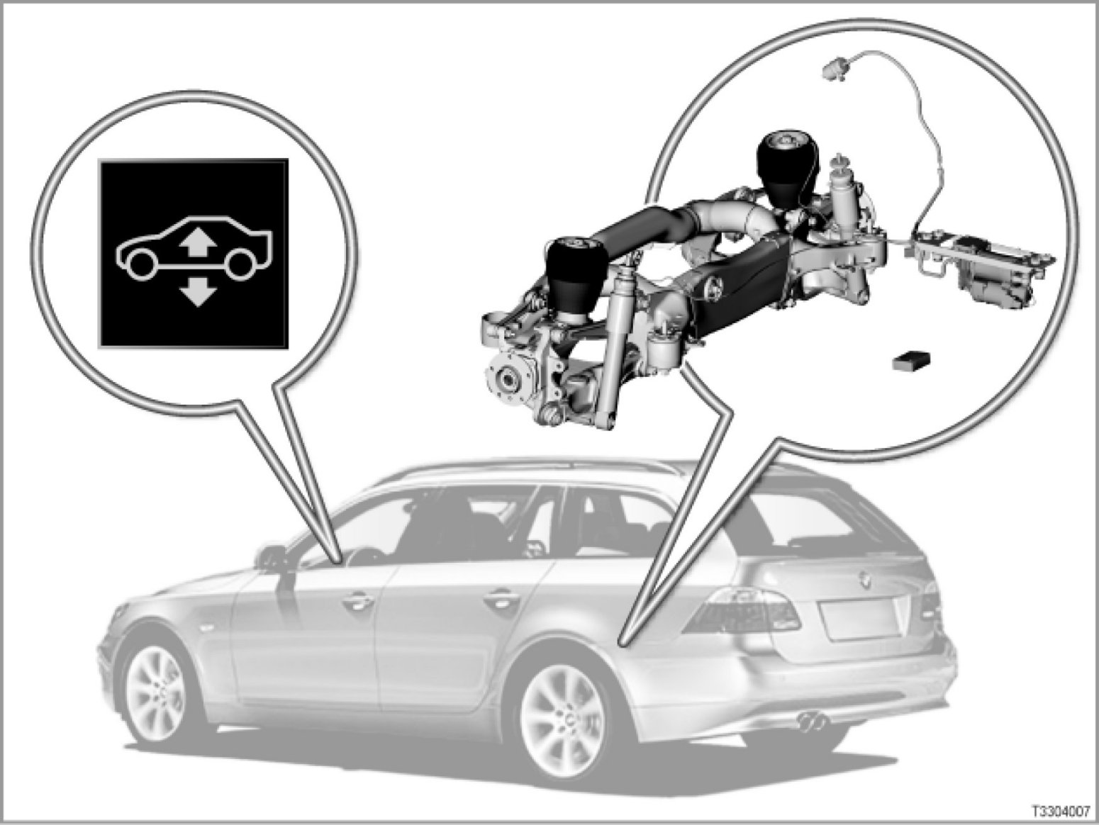 The E61 is equipped as standard with an electronic height control system that uses air suspension on the rear axle.