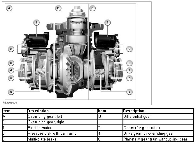 The following components are described for the rear axle lateral torque distribution: