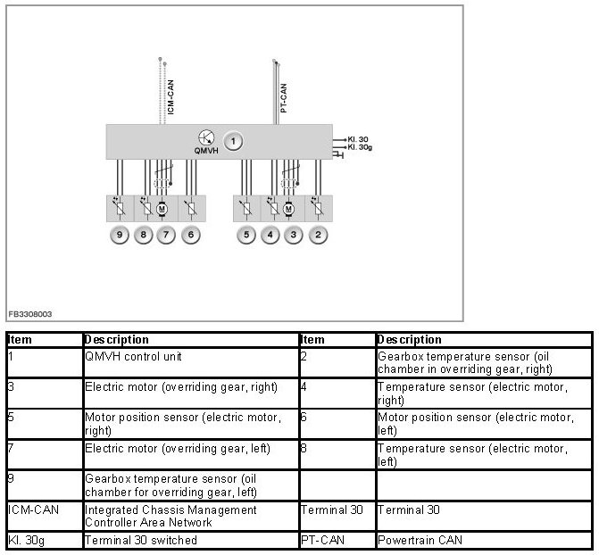 The QMVH control unit has the task of implementing this nominal value by activating the electric motors. The signals of the motor position sensors provide the actual torque transferred for each back wheel. This information is output as a message on the ICM CAN and read by the by the Integrated Chassis Management.