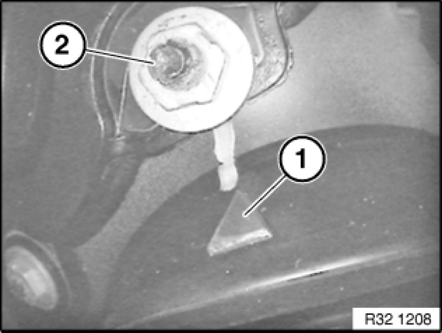 To prevent the sleeve from slipping out and to avoid complaints by the customer about noise, make sure that sealing lip (1) on engine compartment side rests against bulkhead all round and sealing lip (2) in inside the car rests against the damping.