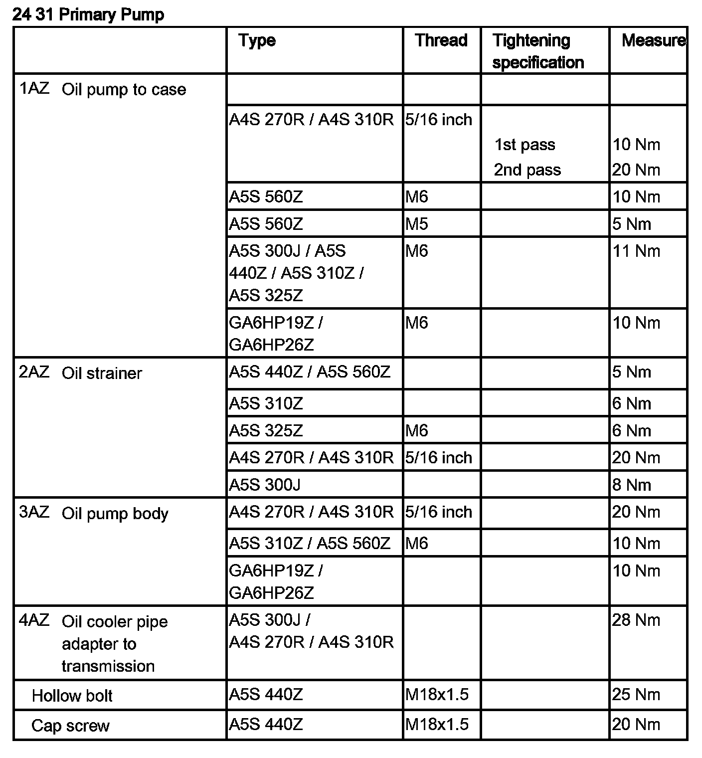 Tightening torque 24 31 3AZ.