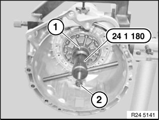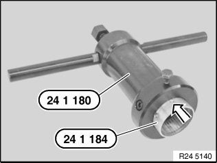 Attach special tool 24 1 180 and secure with screw (1).