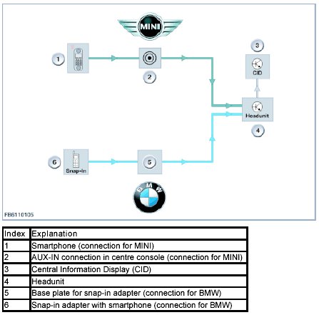 This functional description must be used for BMW and MINI vehicles. The function is identical for both brands. Only the smartphone connection is different. The video connection for the BMW is integrated in the base plate and must be connected with the smartphone via a corresponding snap-in adapter. For the MINI the smartphone is connected via a special MINI Y-cable to the USB and AUX-IN connection in the centre console.