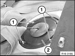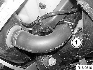 Release hose clamp (1) and detach fuel filler hose from fuel filler pipe.