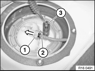 Press grey ring (2) towards sensor unit and pull out fuel feed line (3).