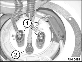 - Check ground connection at fuel filler neck to body for continuity. If necessary, clean contact surface between body and fuel filler pipe screw connection.