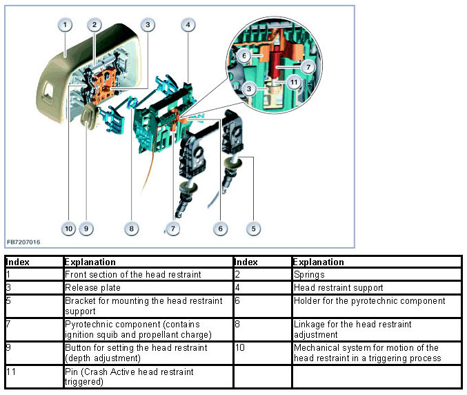 Once the Crash Active head restraint has deployed the pyrotechnical component must always be replaced (observe repair instructions; designation of pyrotechnical component in Electronic Parts Catalogue: gas cartridge).