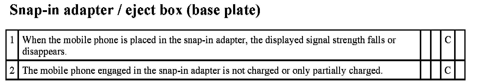 Fault profiles for snap-in adapter / eject box (base plate)
