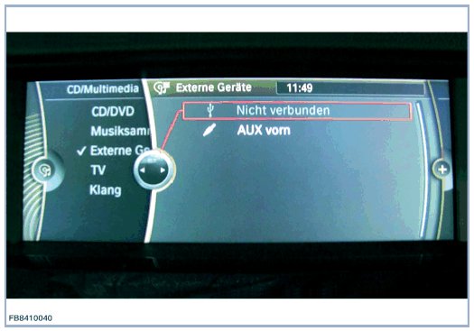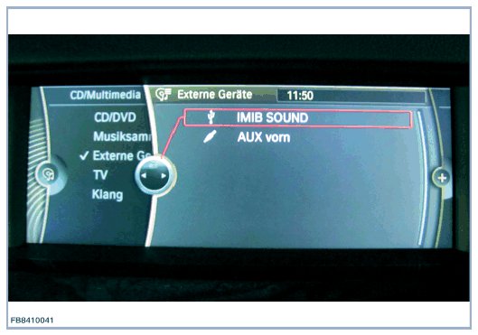 NOTE: Only perform USB test with the USB cable provided in the scope of delivery of the IMIB. Always perform USB tests directly at the USB connection of the vehicle. Do not use extension cables, USB hubs etc.