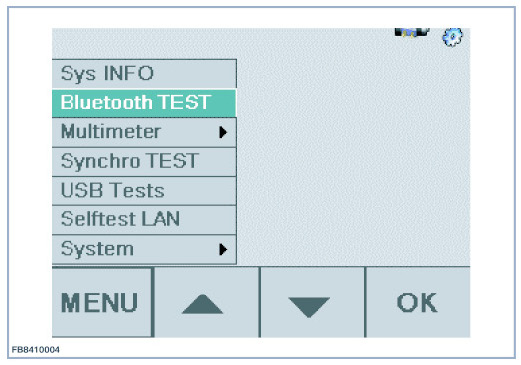 Open up the menu on the IMIB by pressing the MENU button. Select the BLUETOOTH TEST using the navigation buttons and confirm with OK.