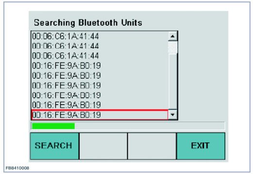 NOTICE: If the Bluetooth test was unsuccessful, repeat test with the IMIB in the luggage compartment close to the control unit. If the vehicle is found when the Bluetooth test is performed in the luggage compartment near the control unit, then the fault is most likely due to the connector of the Bluetooth antenna cable at the control unit. In this case, continue the troubleshooting there.