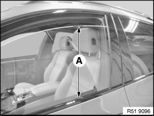 Dimension (A) is the distance between the window cavity cover strip and upper edge of the side window glass.