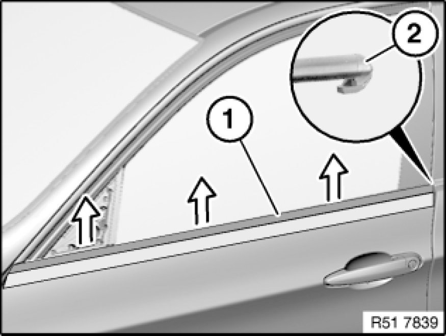 51 21 300 - Removing and installing or replacing window cavity cover strip on outside of left or right front door
