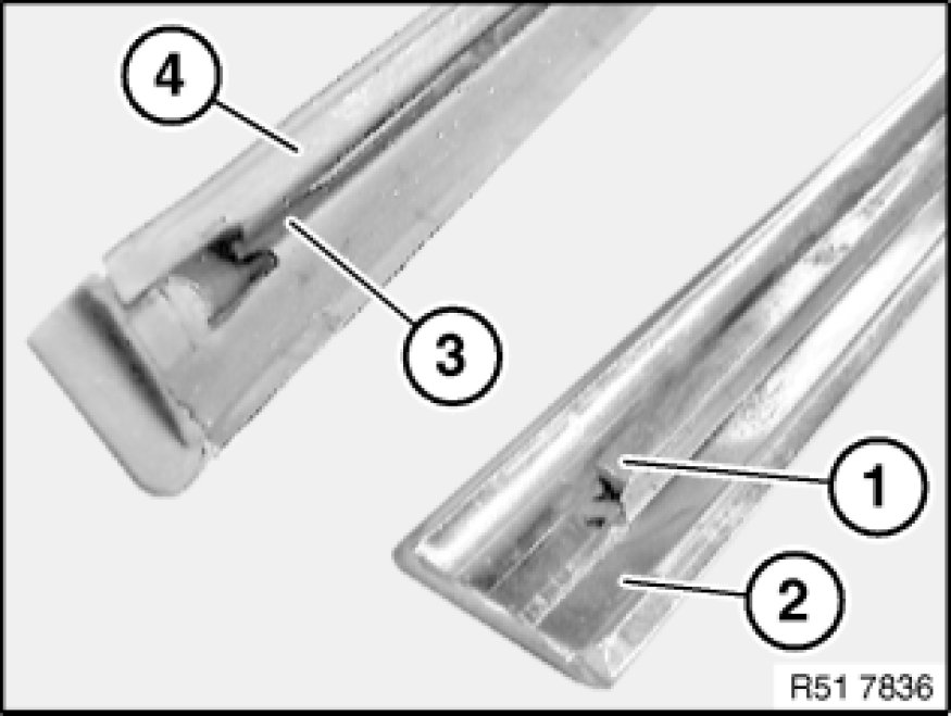 Window cavity cover strip (4) and chrome strip (2) are replaced completely.