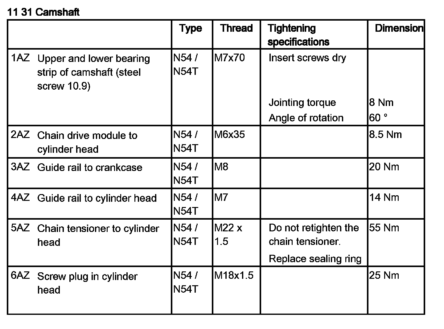 11 31 028 Removing and installing/replacing exhaust camshaft (N52K)Special tools required: