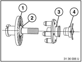 Special tool 36 1 030 consists of: (1) Standing base 36 1 031 (2) Post with clamp 36 1 032 (3) Holder with clamp 36 1 033 (4) Clamp 36 1 034 (5) Measuring roll 36 1 035 (6) Dial gauge 36 1 036