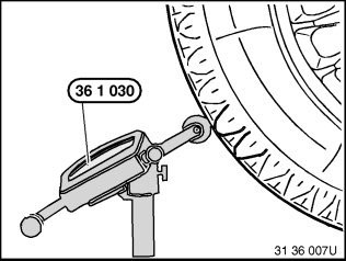 36 10 713 Checking one road wheel on balancing machine for lateral and radial runout (wheel removed)Special tools required: