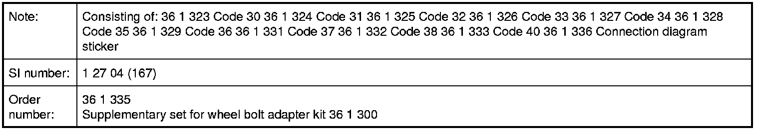 36 1 335 Supplementary set for wheel bolt adapter kit 36 1 300
