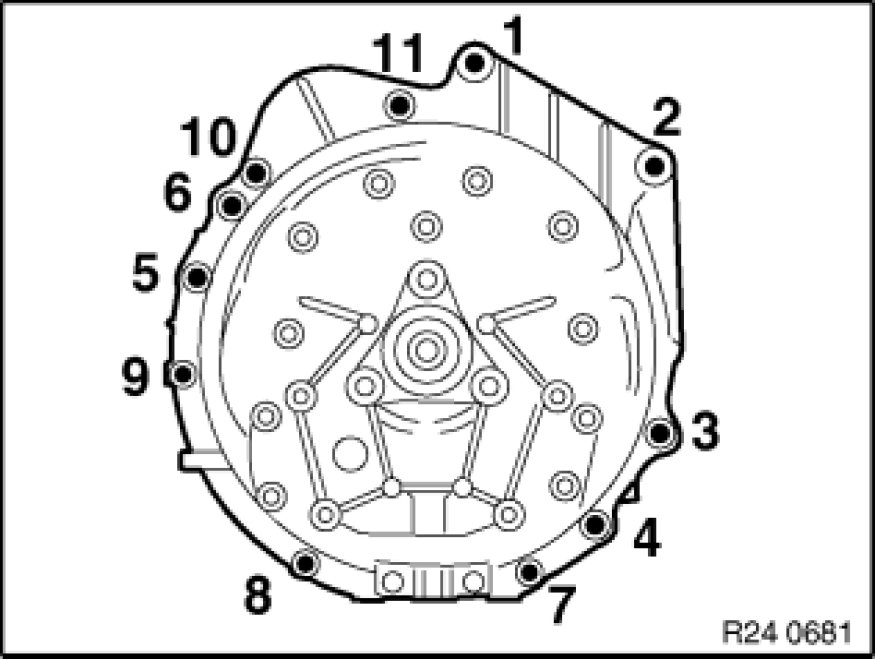 Release all screws of torque converter with special tool 24 1 110 24 1 110 Socket with Magnet.