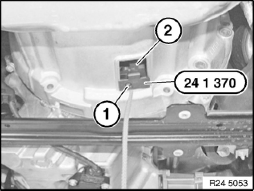 Insert special tool 24 1 370 24 1 370 Locating Fixture into opening of transmission housing and secure with screw (1).