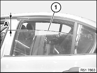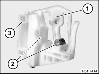 IMPORTANT: Disconnect plug connection (1) from power window motor (2) (risk of trapping).
