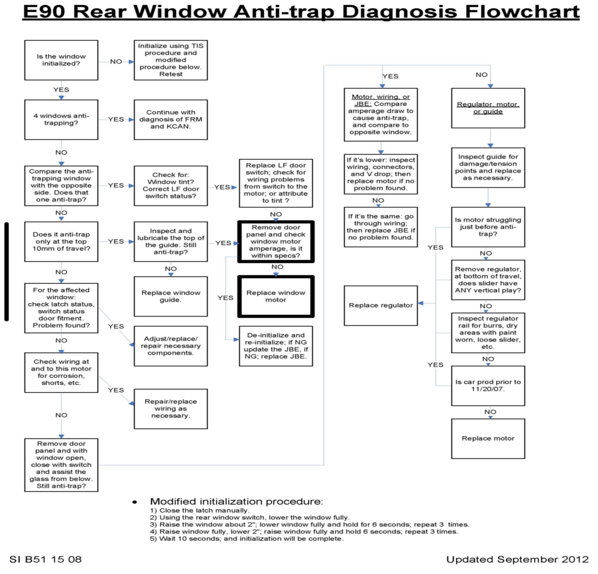 E90 Rear Window Anti-trap Diagnosis Flowchart