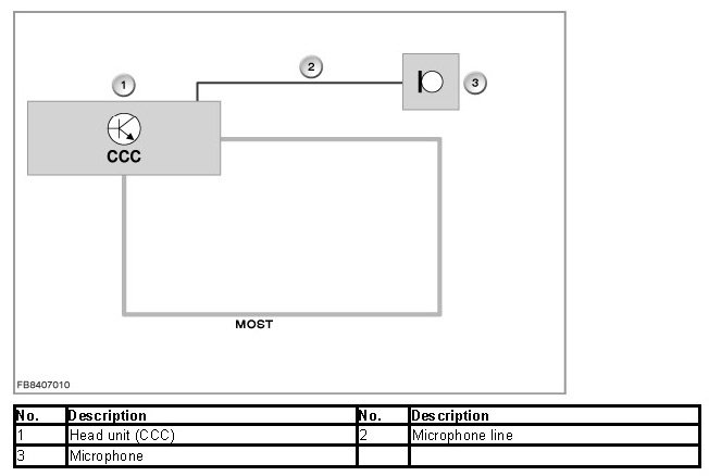 Depending on the vehicle equipment, the vehicle equipment is connected to different control units. The microphone signals are then transferred across the MOST bus to the other control units.