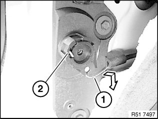Disengage Bowden cable (1) from release lever (2) and feed out in direction of arrow.