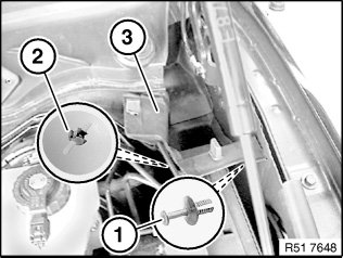 51 23 211 Removing and installing/replacing cable for front engine hood locks (to passenger compartment)