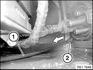 Feed out Bowden cable (1) in direction of engine compartment.