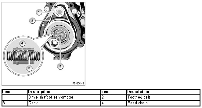 The servomotor is a non-collector, synchronous DC motor (permanent magnet). The servomotor drives the reduction gear. This transfers the power output of the servomotor to the rack.