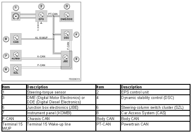 With the E92, an electromechanical power steering (EPS: Electronic Power Steering) is introduced in the BMW 3 Series. The EPS will be introduced with diesel engine M57TU2 in 09/2006. Gradually, the EPS will be introduced as a CO2 reducing measure on all other models.