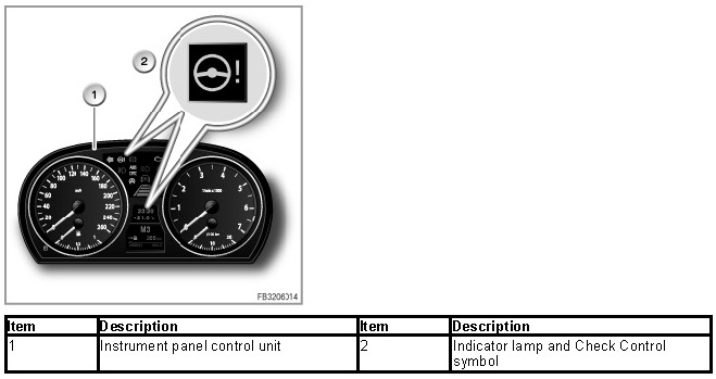 In the event of failure of the electromechanical power steering (EPS), a yellow Check Control symbol appears in the LC display. Simultaneously, the fixed-position indicator lamp lights up in the instrument cluster. The Check- Control symbol has the following meaning: "EPS without function"