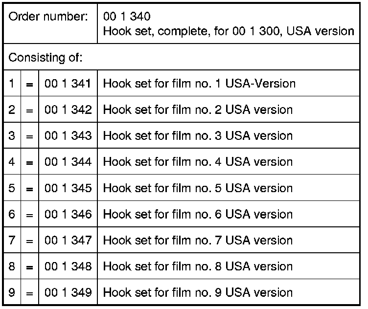 00 1 340 Hook set, complete, for 00 1 300, USA version