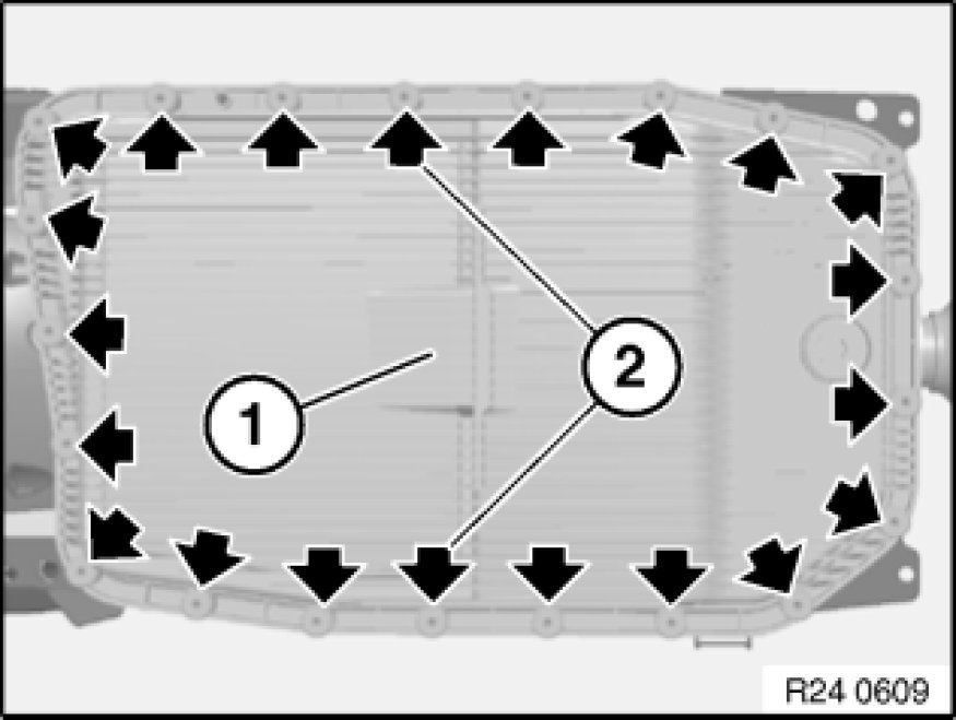 Insert all further screws in diagonal sequence from inside to outside until screw heads make contact.