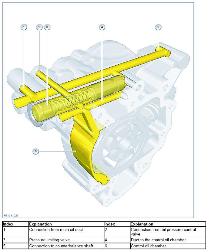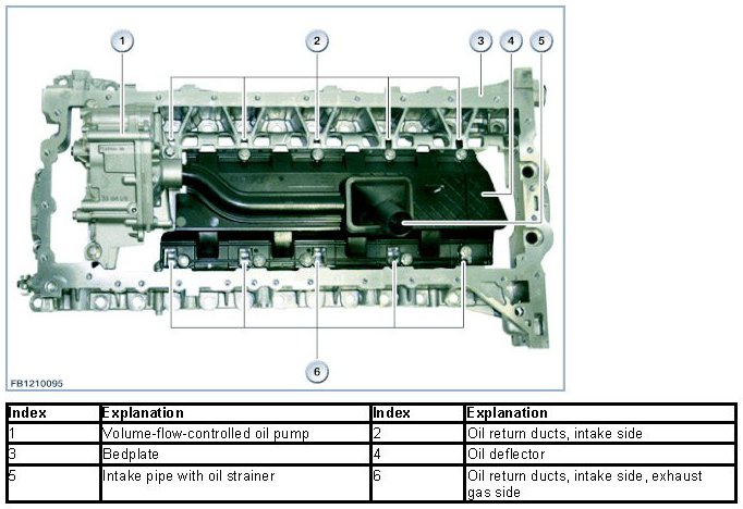 The engine has a volume-flow-regulated oil pump. This volume-flow-controlled oil pump only delivers exactly as much oil as each operating range of the engine requires. Depending on the driving situation, for example, the following oil quantity is required:
