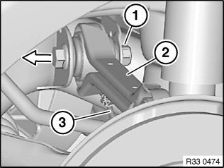If the control arm is detached from the rear axle carrier, it is necessary after reinstallation to carry out a wheel/chassis alignment check.