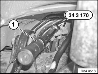 Tighten brake line using torque wrench (1) and special tool 34 3 170.