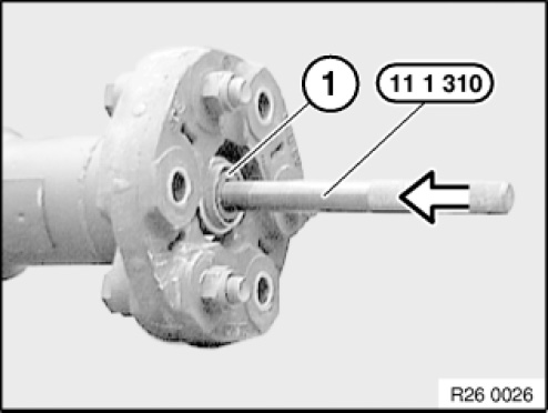 Drive in centring mount (1) with special tools 11 2 030 and 00 5 500 into propeller shaft (observe protrusion).