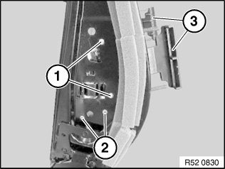 Release rivets (1) on left and right and remove adjusting elements (3).