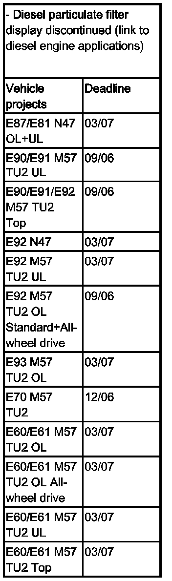 - Displays for interior microfilter, spark plugs and emissions test discontinued (revised encoding).