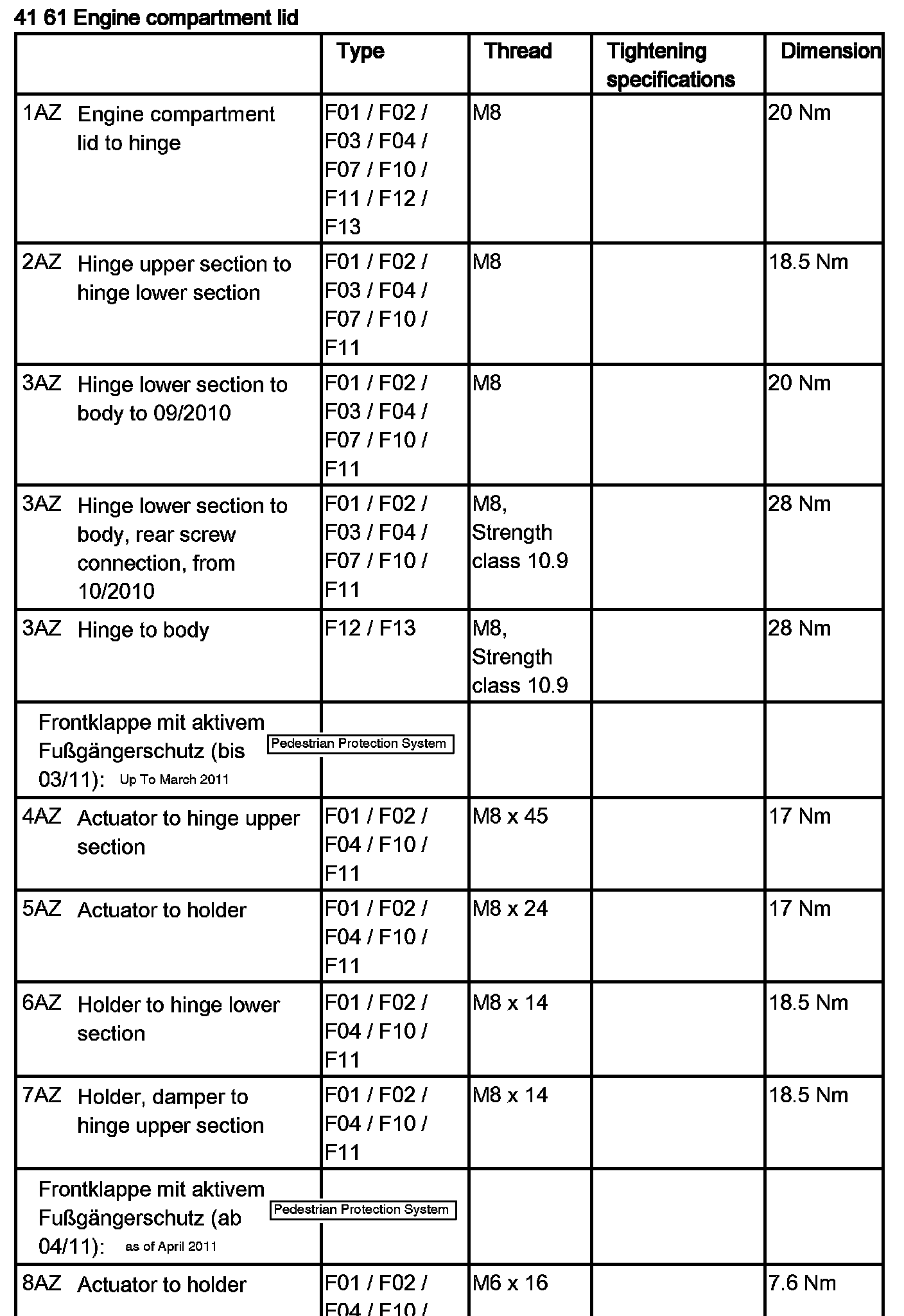 Tightening torque 41 61 4AZ.
