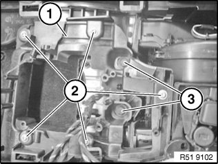 Release screws (2) from centre armrest frame (1) and remove frame.