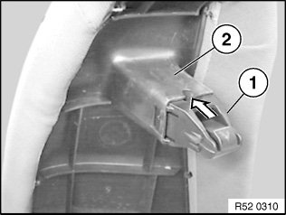 Unclip top backrest side section (1) forwards and pull out upwards (2).