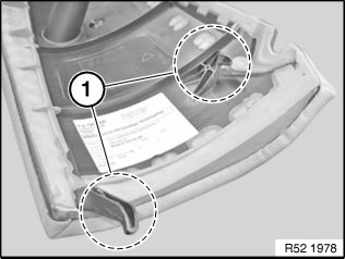 - Then press the backrest side section down, so that the guides (1) seat properly in the fixtures.