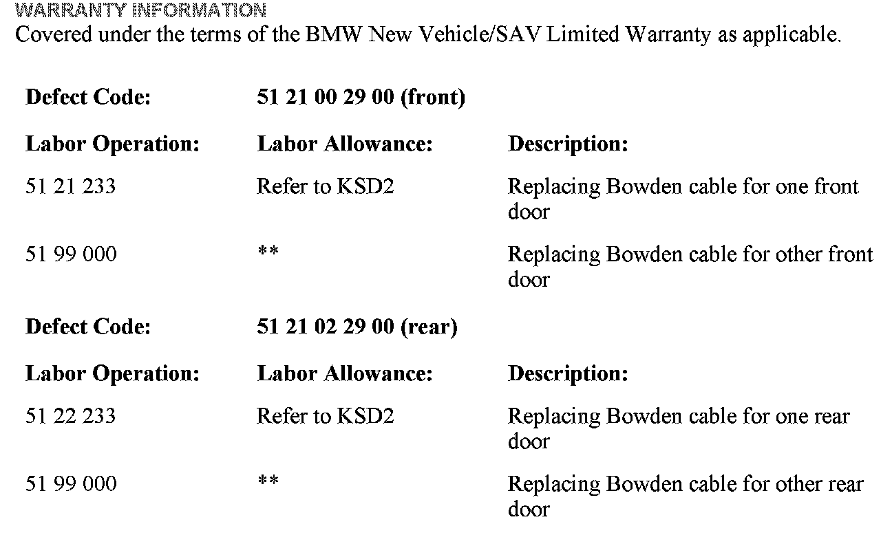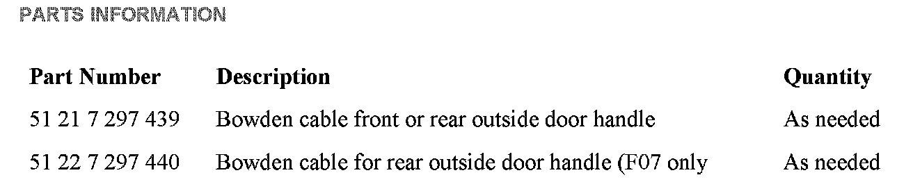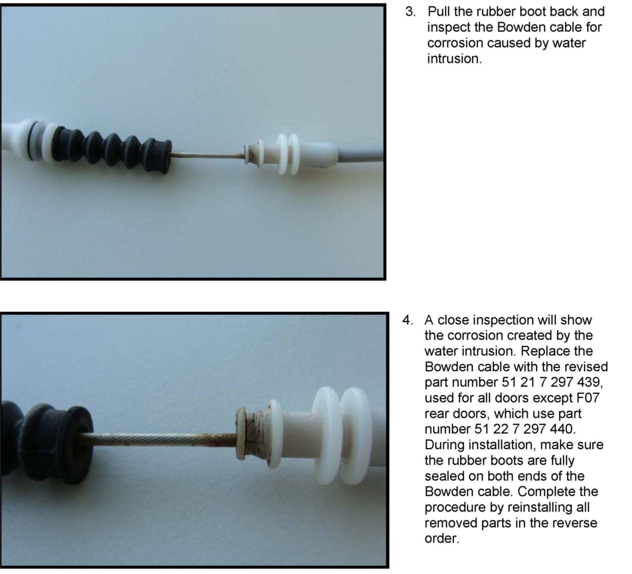 The Bowden cable for the outside door handle has moisture inside. The water intrusion can freeze, making the door handle inoperative.